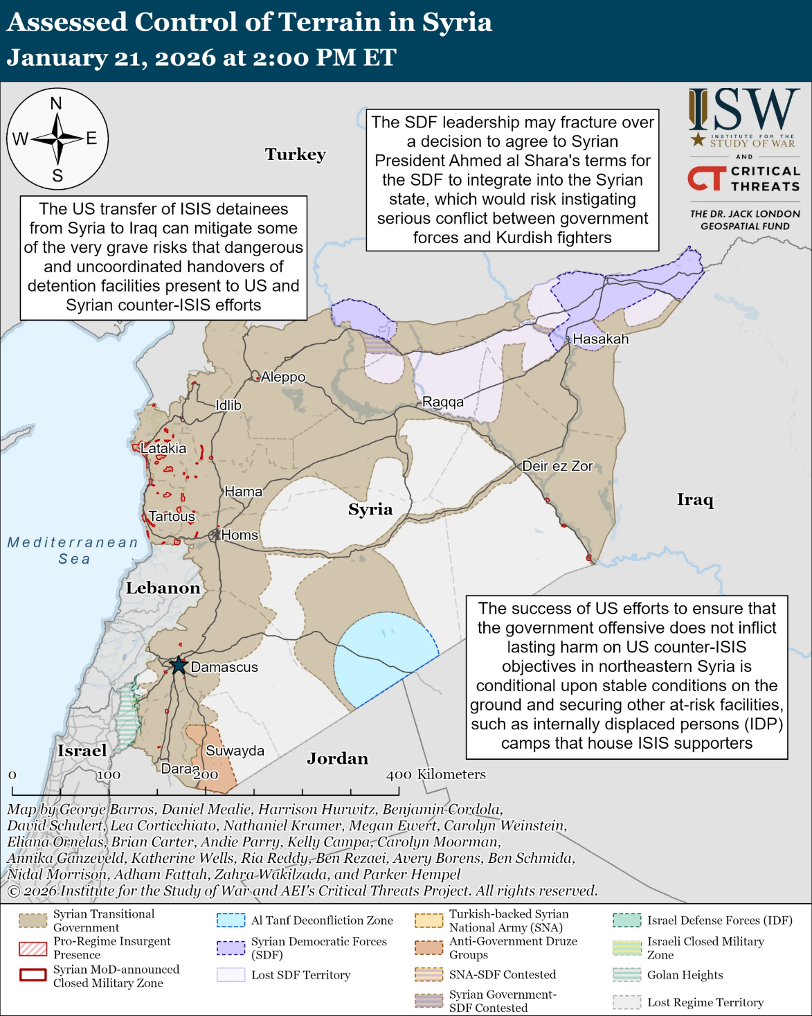 Fighting resumed in mid-2025. The hotspots were areas near Aleppo, where Kurds lived, as well as territories that the SDF had occupied in 2024. The gradual advance of the new Syrian government's troops revealed the structural weaknesses of Kurdish autonomy and the SDF forces. Although the command and ethnically Kurdish units remained steadfast, Arab units retreated en masse and showed no desire to fight the government forces, which they sympathised with. On 13 January 2026, Damascus troops entered the Kurdish autonomous territory on the left bank of the Euphrates River. The SDF quickly retreated from most of the territories they had previously controlled, losing oil fields and their entire economic base.