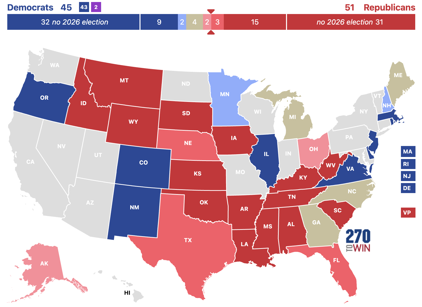 In the US House of Representatives, Republicans find themselves in a situation where, in order to retain control of the lower house, the party can afford to lose no more than two seats. According to the latest analysis of the political composition of the districts, 27 out of 435 are considered ‘undecided.’ Most of the districts considered competitive are currently controlled by Republicans — 15 out of 27 (the remaining 12 are controlled by Democrats). This means that the party will have to spend enormous resources to defend current lawmakers in traditionally Democratic states such as California and New York. Also, due to the decline in support for ICE's actions, the party is forced to spend enormous amounts of money to defend current lawmakers in suburban areas, where the immigration issue previously helped Republicans but now works against them.