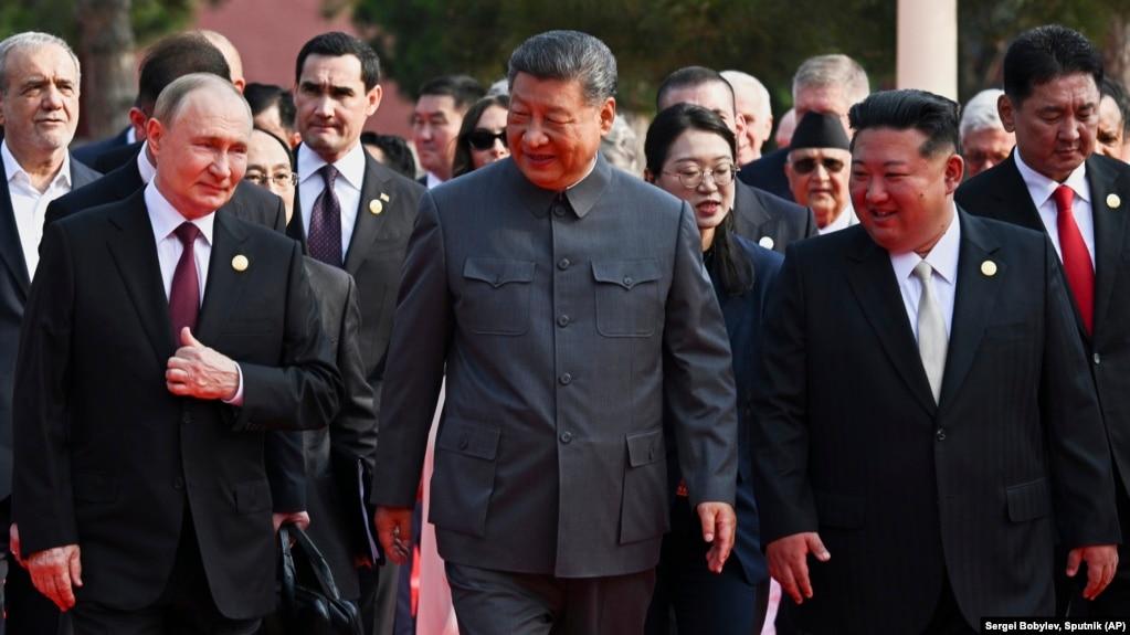 Die "Achse der Autokraten": Wladimir Putin, Xi Jinping und Kim Jong-un bei der Ankunft zu einer Militärparade in Peking, 3. September 2025