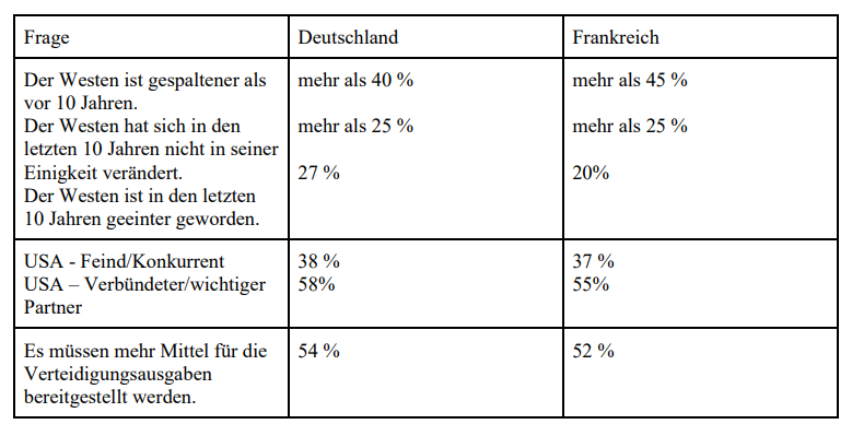 Eine weitere Umfrage, die im Vorfeld der Münchner Konferenz 2026 zu NATO und Verteidigung durchgeführt wurde , ergab folgende Ergebnisse für die beiden Länder:
