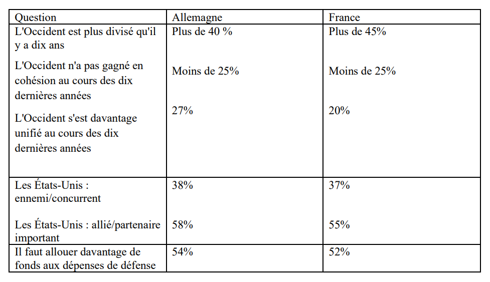 Il existe un autre sondage, réalisé à la veille de la Conférence de Munich de 2026 sur l'OTAN et la défense. Il a donné les résultats suivants pour ces deux pays :