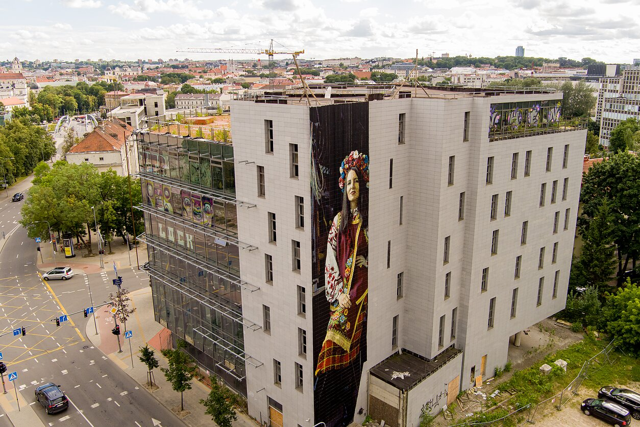 House of Moscow in Vilnius. After 2022, it was decorated with a mural "Do Peremogi / Iki Pergalės" in support of Ukraine. | D. Umbraso / LRT nuotr