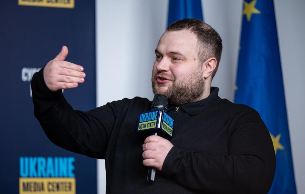 Dmytro Korniienko, founder of the Resurgam analytical community, during the presentation of the study at the Ukraine Media Center