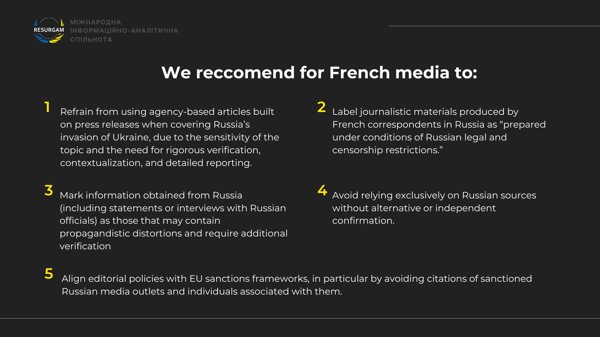 At the same time, it is important to emphasize that the majority of French media outlets analyzed demonstrate a high level of journalistic standards.