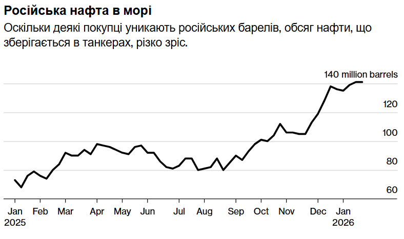 Джерело: https://www.bloomberg.com/news/articles/2026-01-27/russia-oil-exports-get-stuck-at-sea-amid-pullback-by-indian-refiners