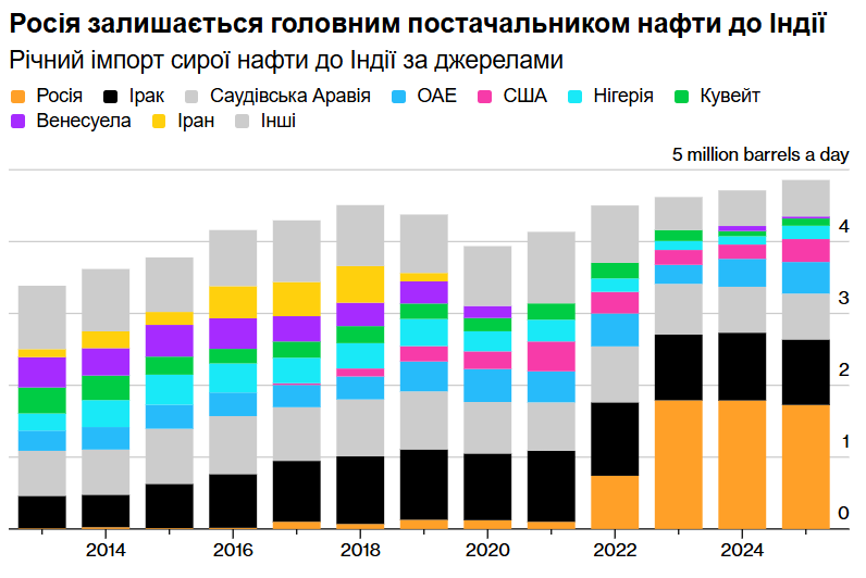 Джерело: https://www.bloomberg.com/news/articles/2026-02-09/indian-imports-of-russian-oil-seen-halving-on-white-house-order