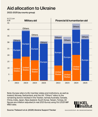 На початку повномасштабної війни саме американські постачання озброєння відігравали визначальну роль у забезпеченні обороноздатності України, але потім їхня частка різко скоротилася. У період з 2022 по 2024 роки США виділяли близько 30 млрд євро на рік на військову та гуманітарну допомогу. Але вже наступного року США виділили лише 400 млн євро підтримки, а європейська підтримка склала близько 34,5 млрд євро. Додатково, Європа надала пільговий кредит Україні розміром 90 млрд євро на 2 роки, з яких 60 млрд євро можуть бути використані на оборонні потреби.