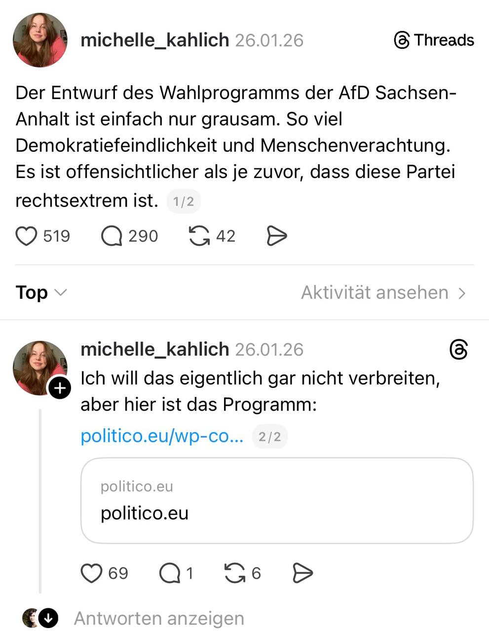 Ми трохи окреслимо політичний контур землі (Саксонія-Анхальт), і знайдемо причини популярності АдН саме в ній. Також ми торкнемось їхньої передвиборчої програми, перевіримо її зміст та спробуємо зрозуміти, чи є раціональним страх перед реальністю їхнього задуму.