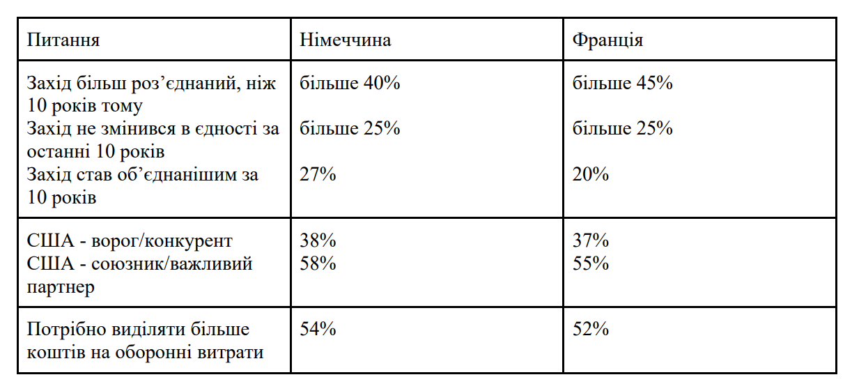 Існує й інше опитування, зроблене напередодні Мюнхенської конференції-2026 на рахунок НАТО та оборони. Воно показало такі результати серед двох країн: